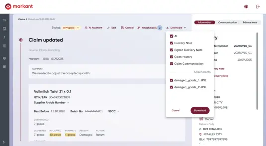 All the details about your claims in one tool: With DVA, you can track the current status of a claim at any time! Important information such as reason for complaint, quantities, batches and much more can be called up at any time - without any additional research.