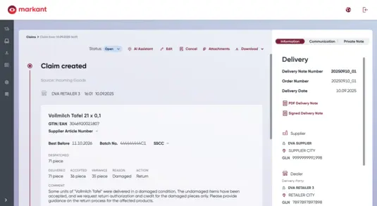 «All information on complaints at a glance, a single source of truth - that's what we need and are looking for. RECADV also offers us optimisation potential in the invoicing process, which we can tap into with DVA.»